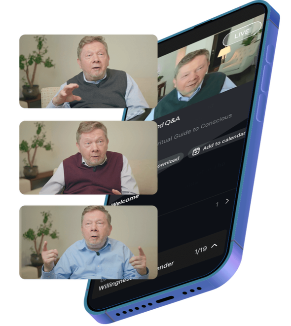 With live Q&A sessions and 24/7 AI guidance, you’ll never have to face your challenges alone. You’ll have Eckhart’s teachings available whenever you need them.